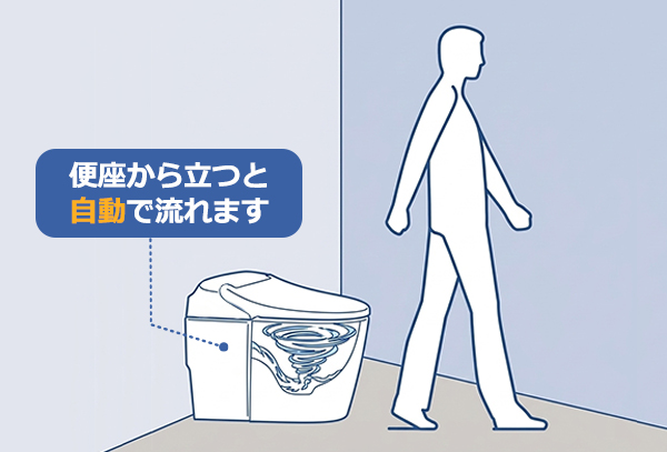 オート洗浄機能とは、便座から立ち上がった後などに自動で水が流れる機能です。