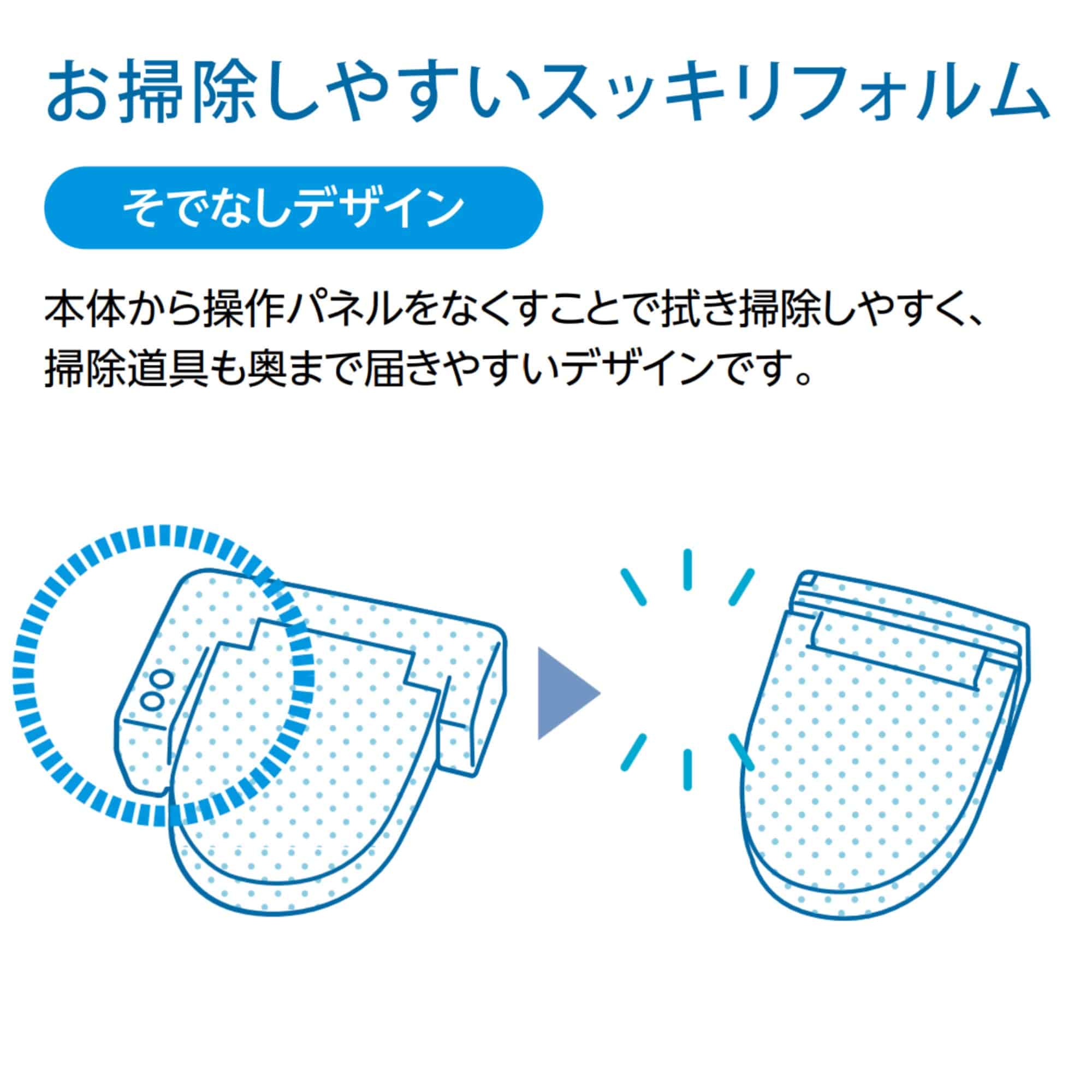 リモコン操作なので邪魔な操作部がなくてトイレ空間が広く使えるスッキリデザインのシャワートイレ