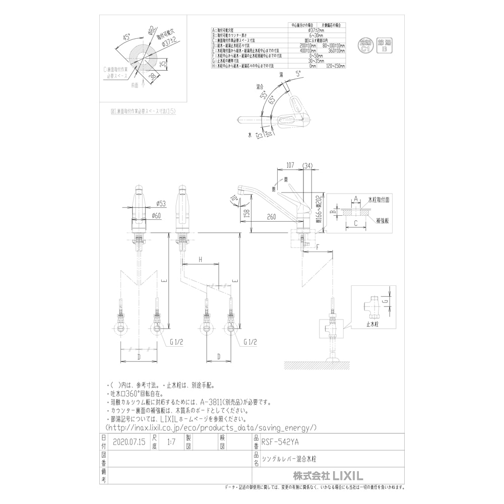 INAX キッチン用シングルレバー混合水栓 RSF-542YKN