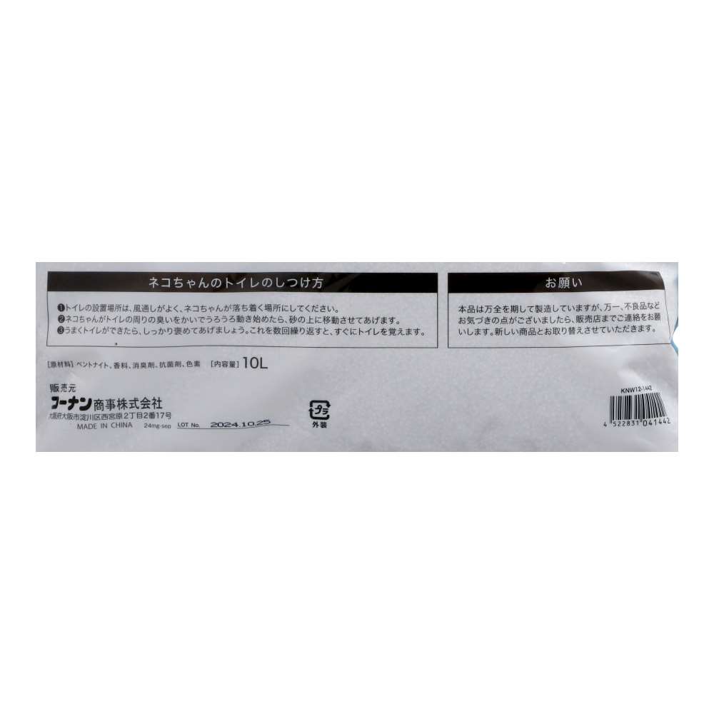 ●原材料:ベントナイト・香料・消臭剤・抗菌剤・色素