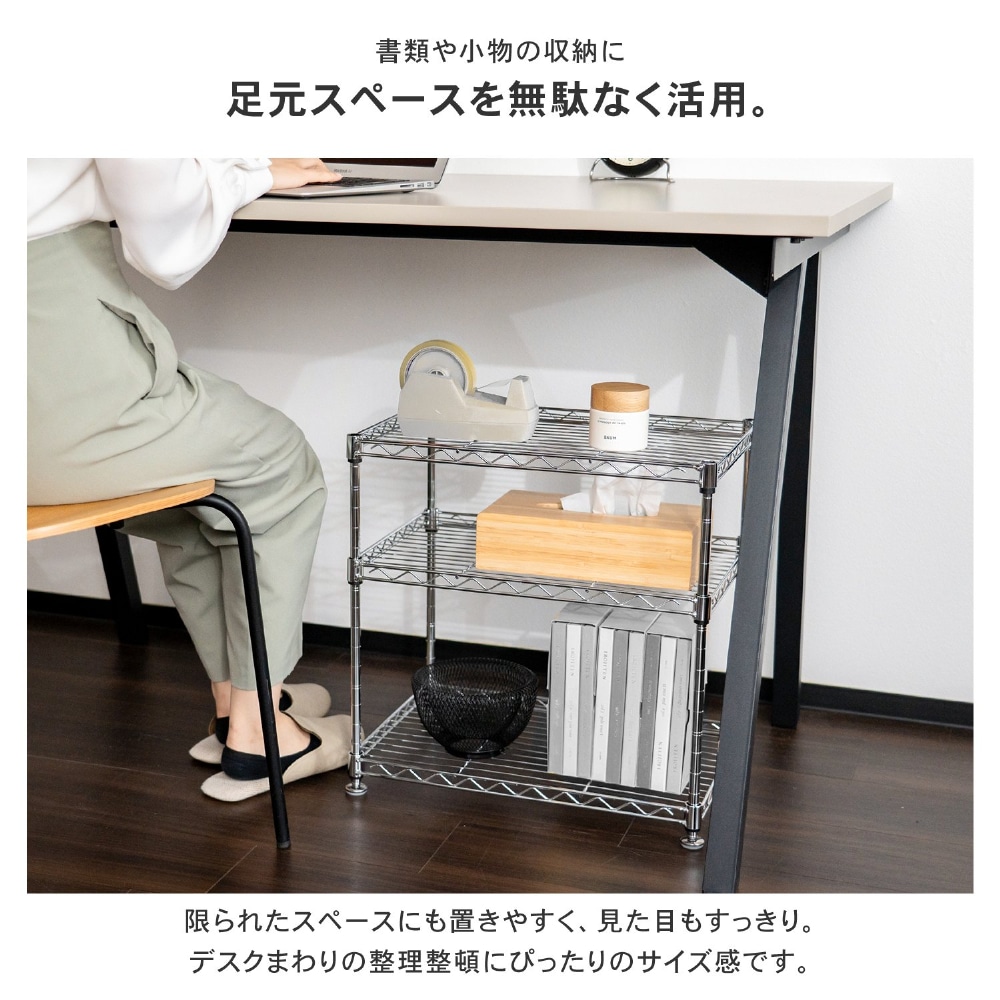 ●足元スペースを無駄なく活用。書類や小物の収納に。限られたスペースにも置きやすく、見た目もすっきり。デスクまわりの整理整頓にぴったりのサイズ感です。