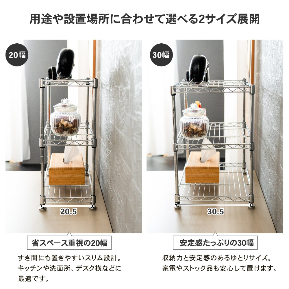 ●安定感たっぷりの30幅。収納力と安定感のあるゆとりサイズ。家電やストック品も安心して置けます。