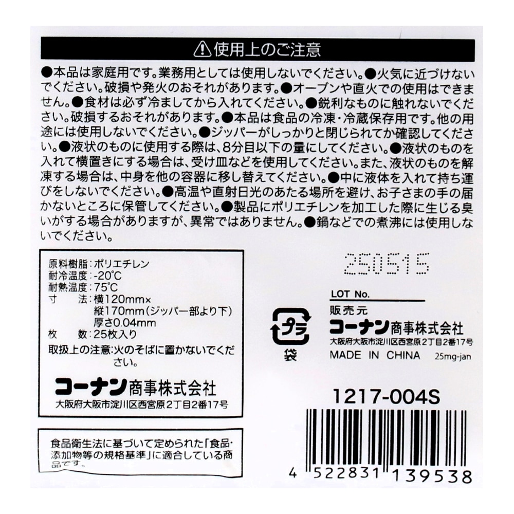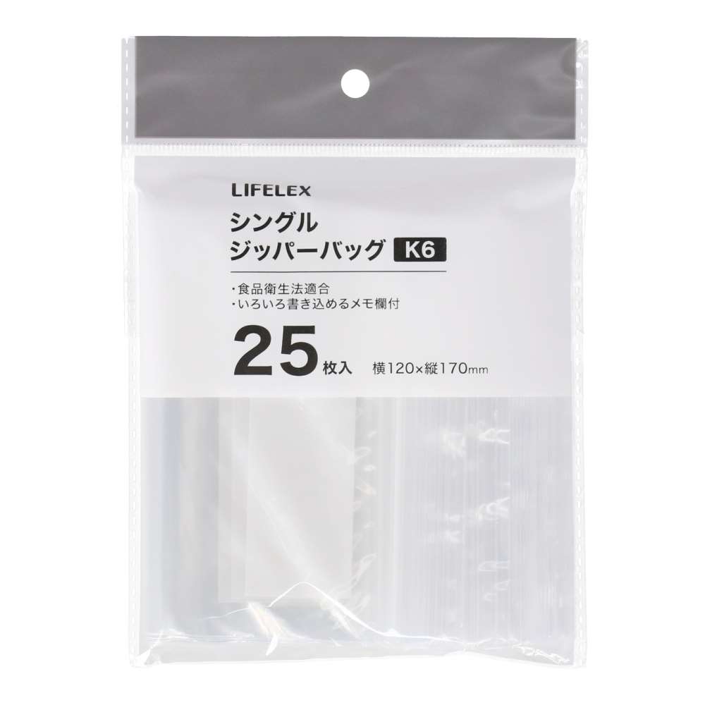 LIFELEX シングルジッパーバッグ K6 25枚入 1217-004S 透明