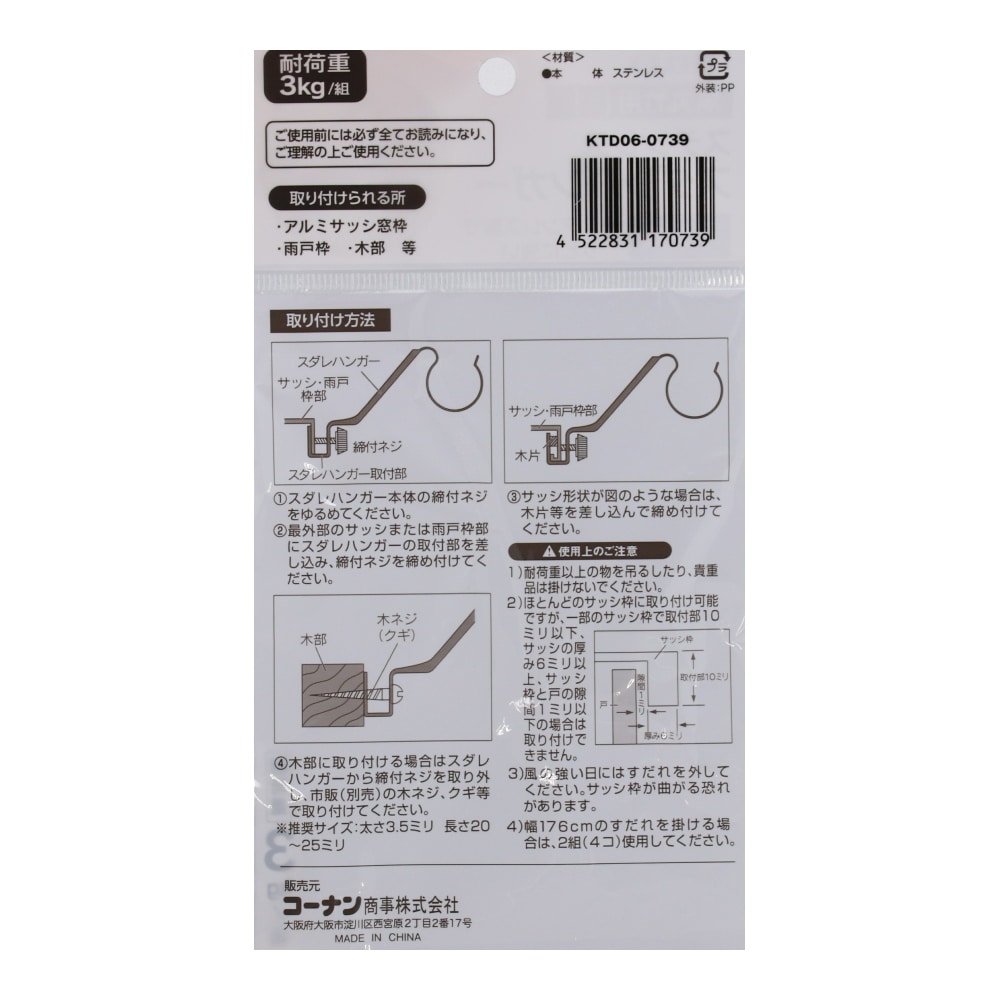 ※幅176cmのすだれを掛ける場合は、2組(4コ)使用してください。