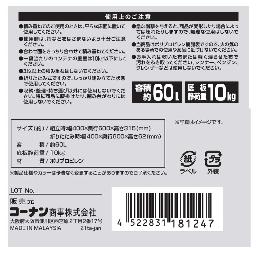 ※ご注意:積み重ねは3段以内でご使用ください