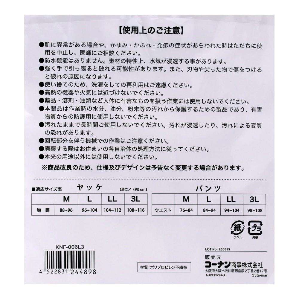 PROACT 不織布ヤッケ上下セット 3Lサイズ KNF-006L3 ホワイト