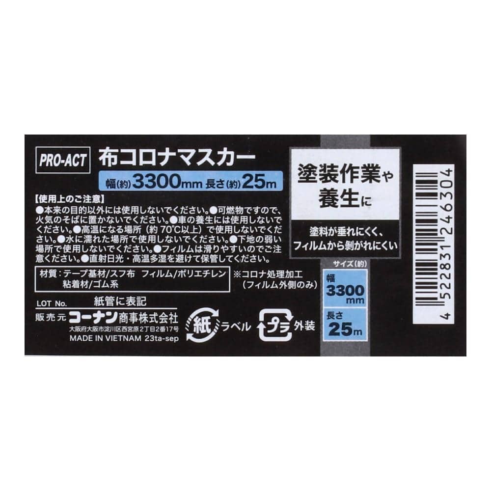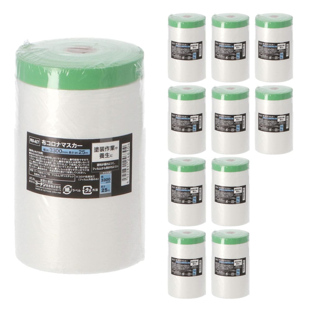 PROACT 布コロナマスカー 幅3300mm×長さ25m テープ:グリーン フィルム:ナチュラル ×10個セット