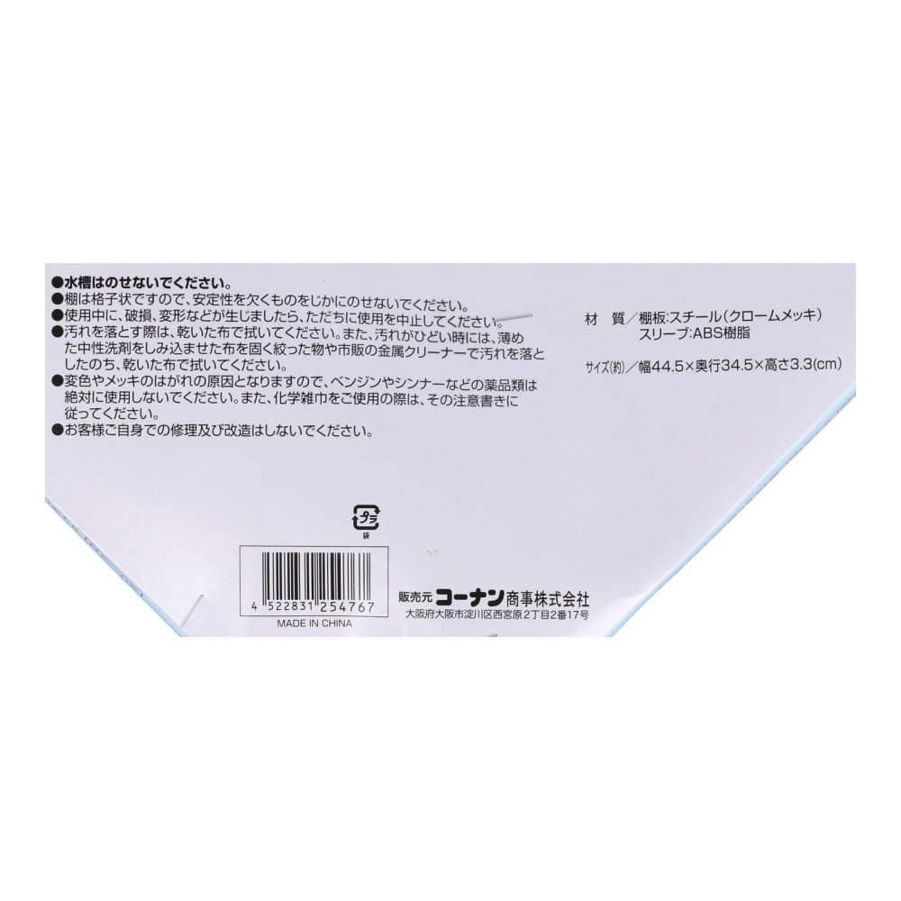 ●材質:棚板/スチール(クロームメッキ) スリーブ/ABS樹脂