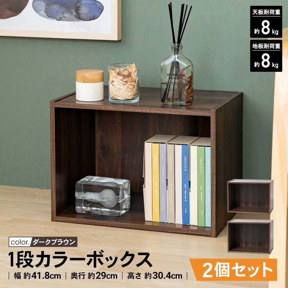LIFELEX 1段カラーボックス ダークブラウン β ×2個セット