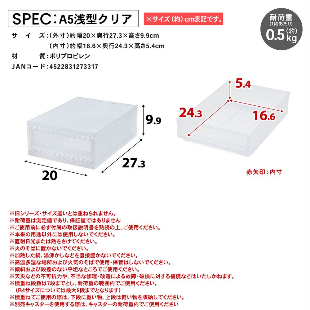 ●耐荷重(1段あたり):約0.5kg