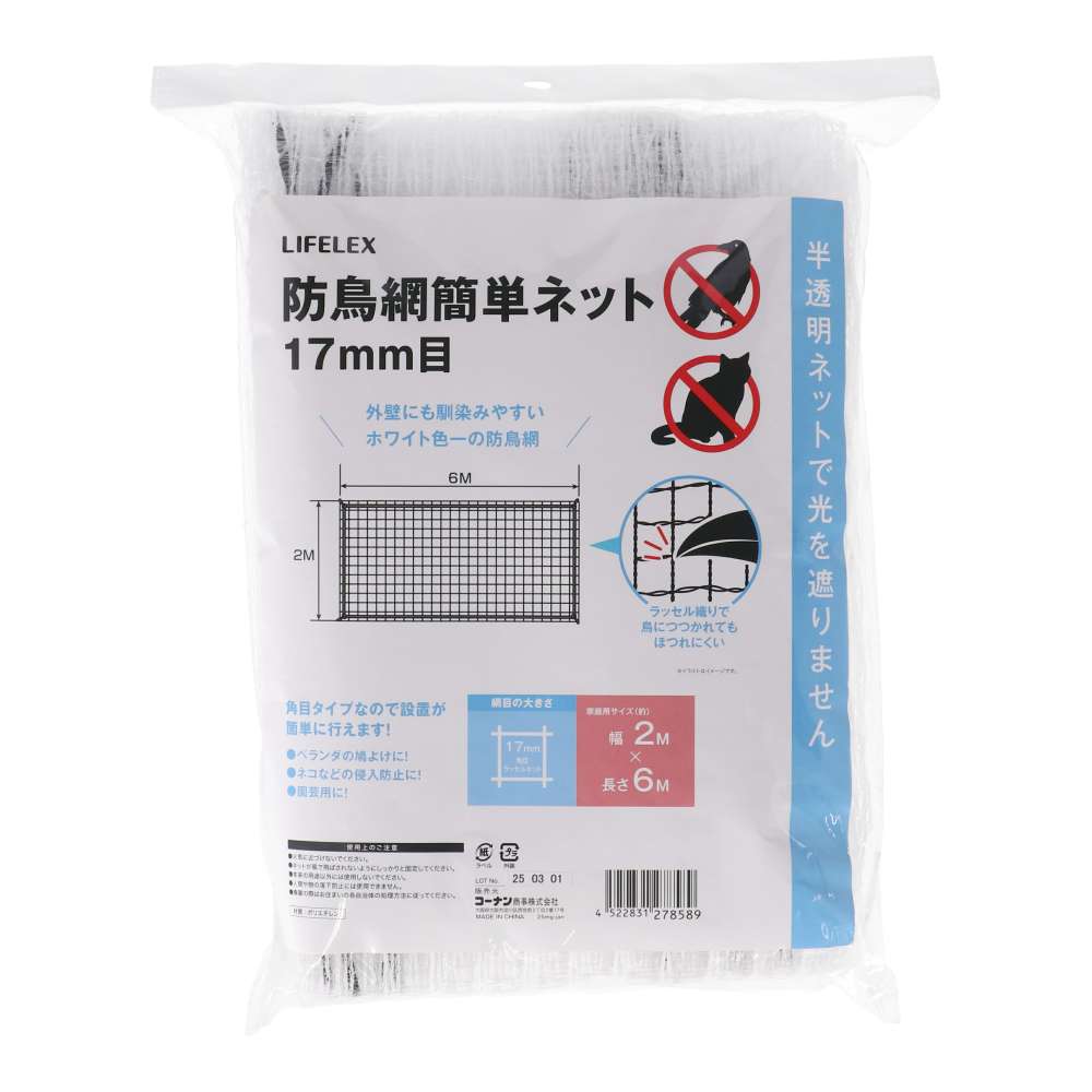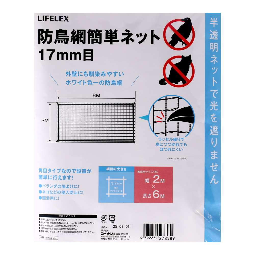 LIFELEX 防鳥網簡単ネット 17mm目 約2×6m