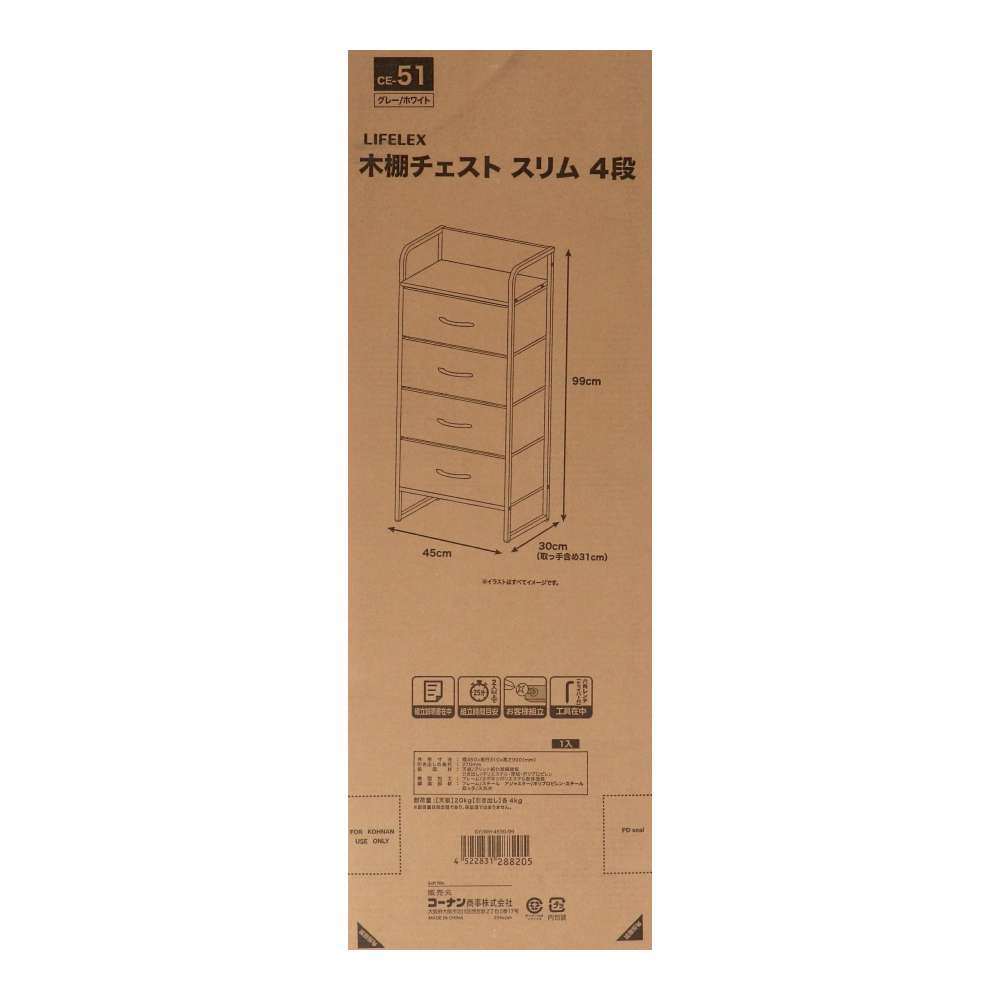 LIFELEX 木棚チェスト4段45 GY/WH 4530-99 グレー