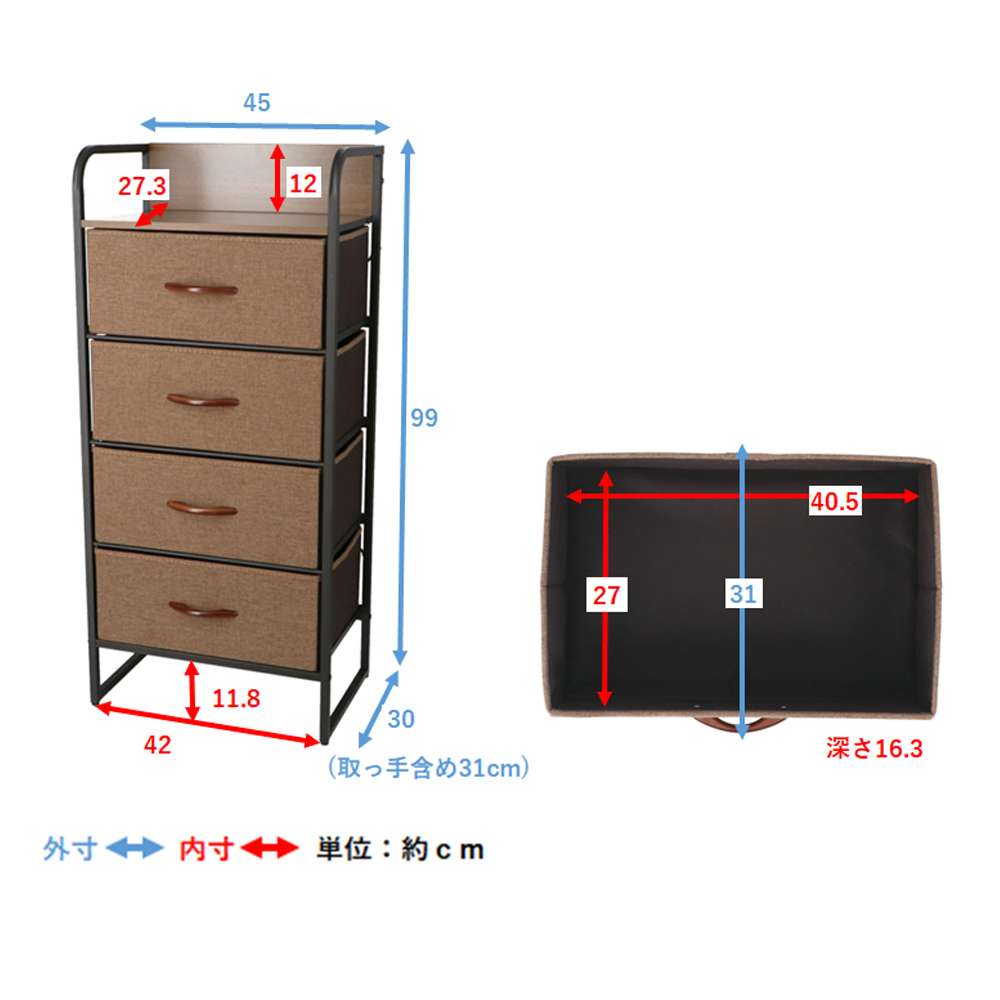 ●外寸寸法(約):幅45×奥行31×高さ99cm