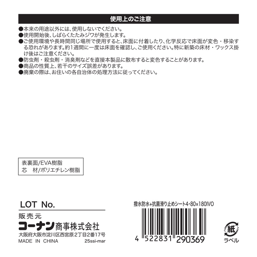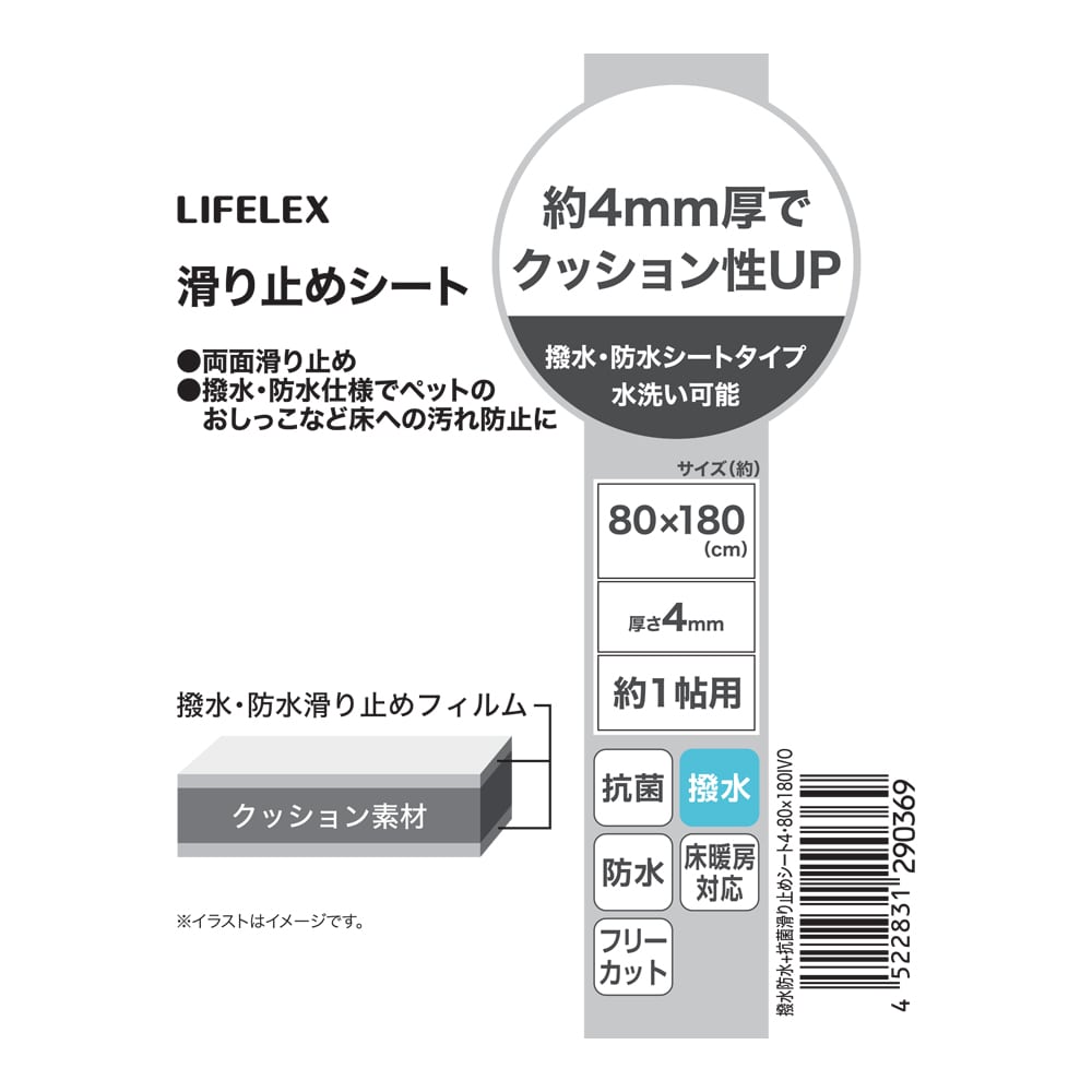 LIFELEX 撥水・防水滑り止めシート 約1帖用 4・80×180IVO