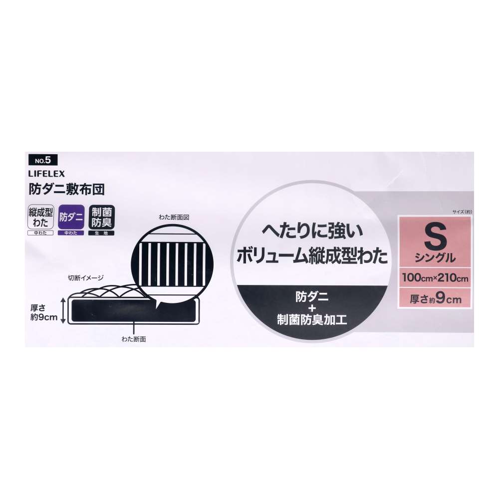 LIFELEX 縦成型わたで支えるボリューム防ダニ敷布団 S