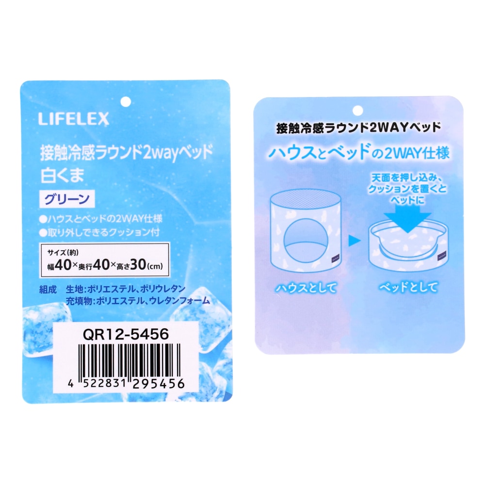 LIFELEX 接触冷感ラウンド2wayベッド 白くま グリーン QR12-5456 26SS