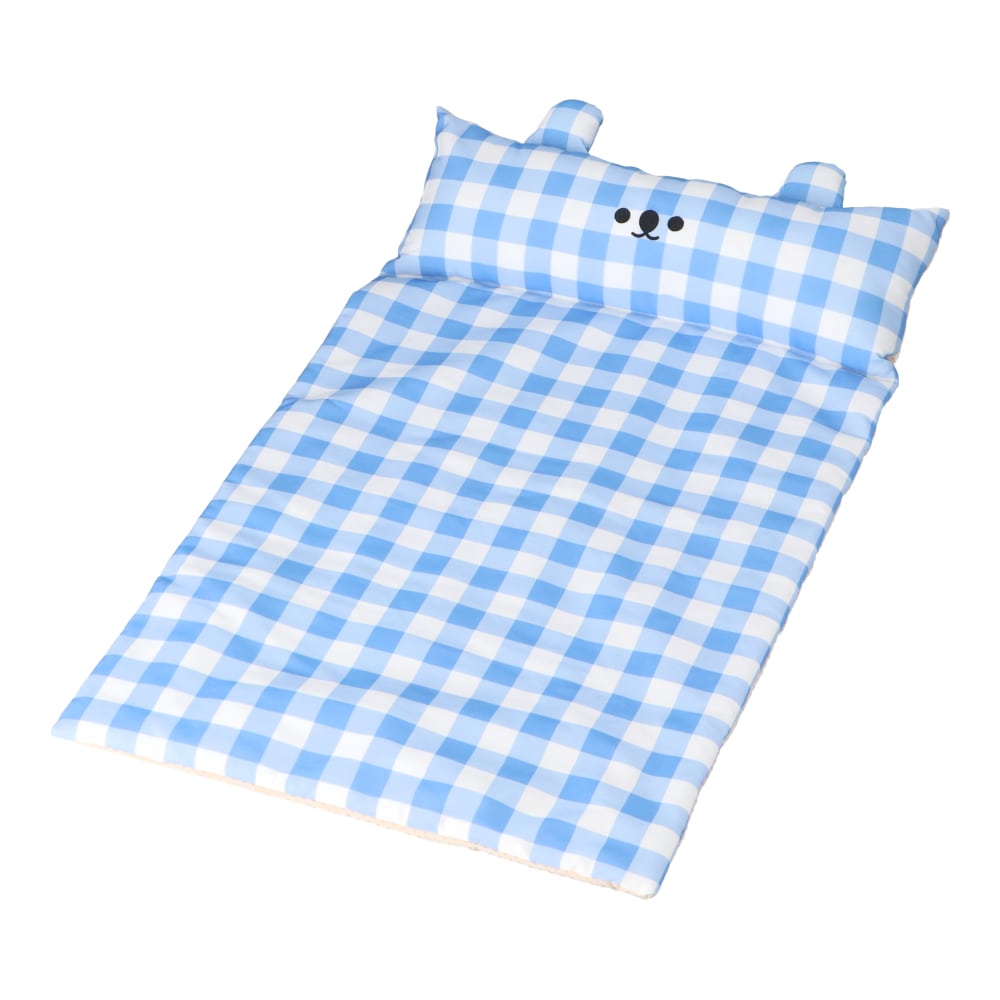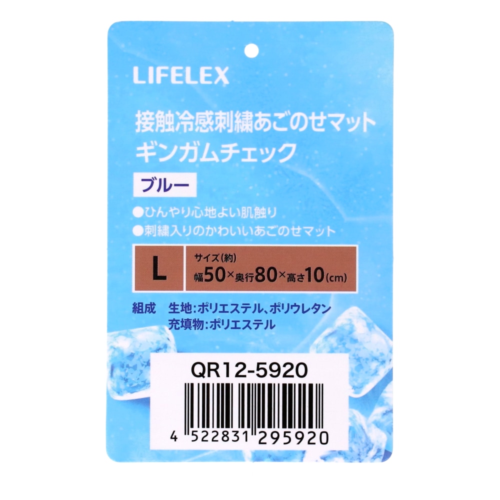 LIFELEX 接触冷感刺繍あごのせマットL ギンガムチェックBL QR12-5920 ブルー 26SS