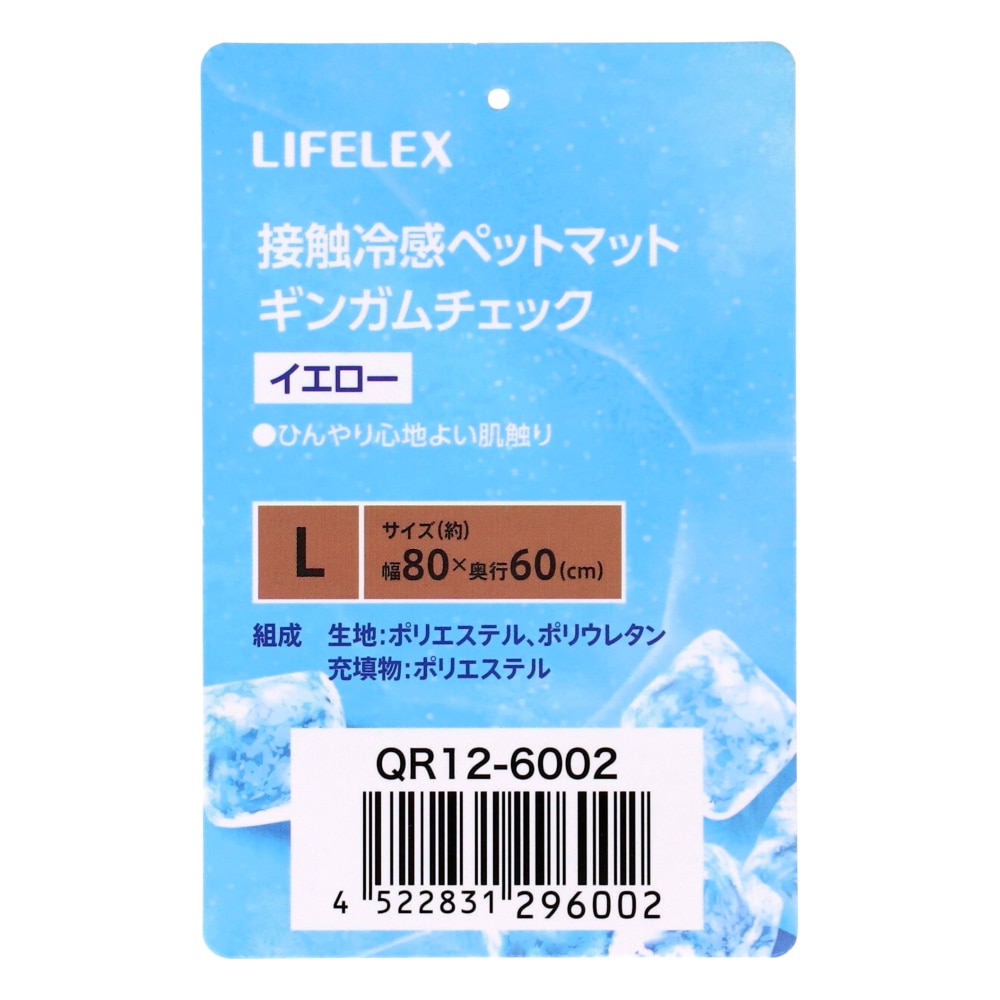 LIFELEX 接触冷感ペットマット L ギンガムチェック YE QR12-6002 イエロー 26SS
