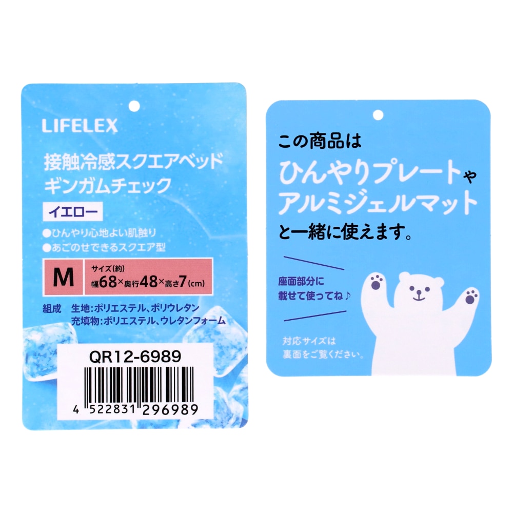 LIFELEX 接触冷感スクエアベッド M ギンガムチェック YE QR12-6989 イエロー 26SS