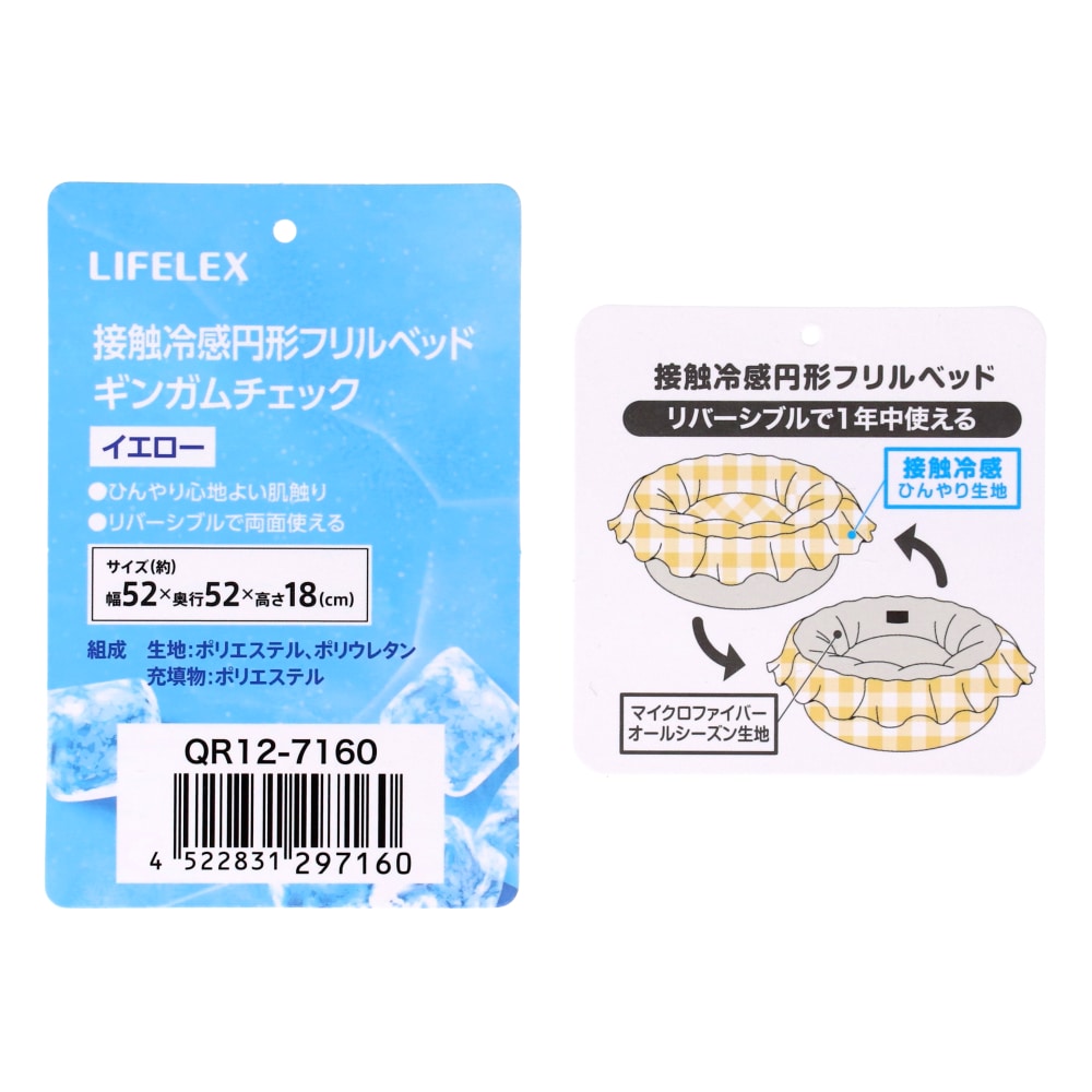 LIFELEX 接触冷感円形フリルベッド ギンガムチェック YE QR12-7160 イエロー 26SS