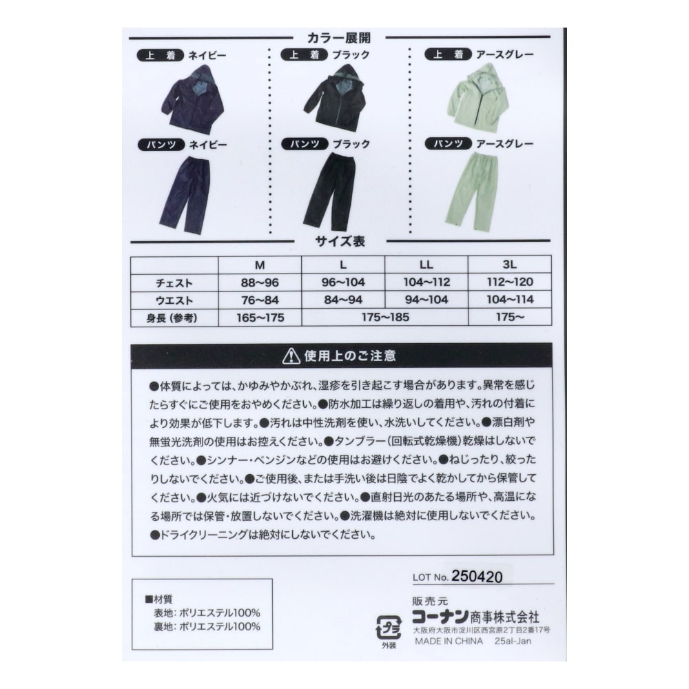 PROACT ベーシックレインウェア ネイビー LL
