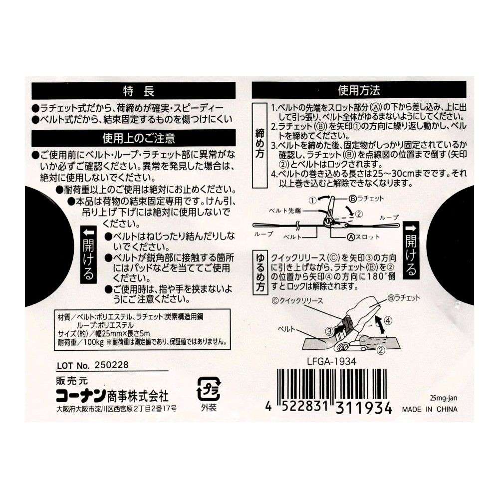 LIFELEX 荷締めベルトラチェット式 5M×2本組 ループタイプ LFGA-1934