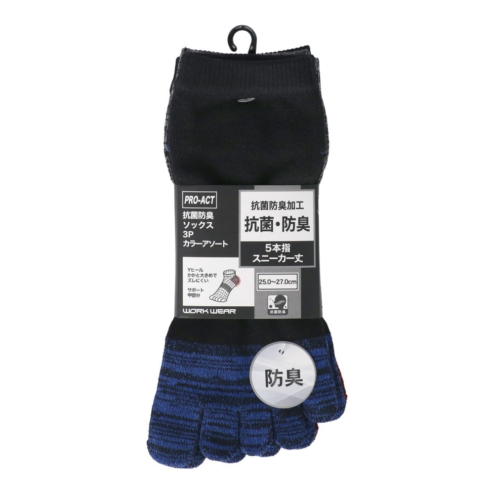 PROACT 抗菌防臭ソックス 五本指 スニーカー丈 3P
