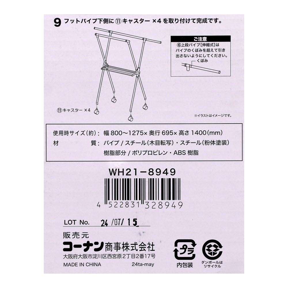 LIFELEX 木目調 X型室内物干し キャスター付 ブラック WH21-8949