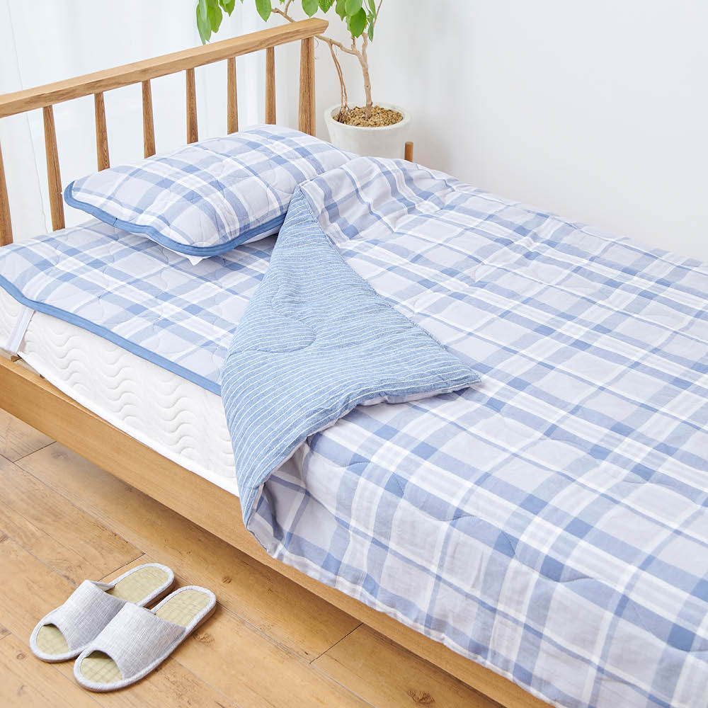 - 敷パッド シングル ブルーチェック