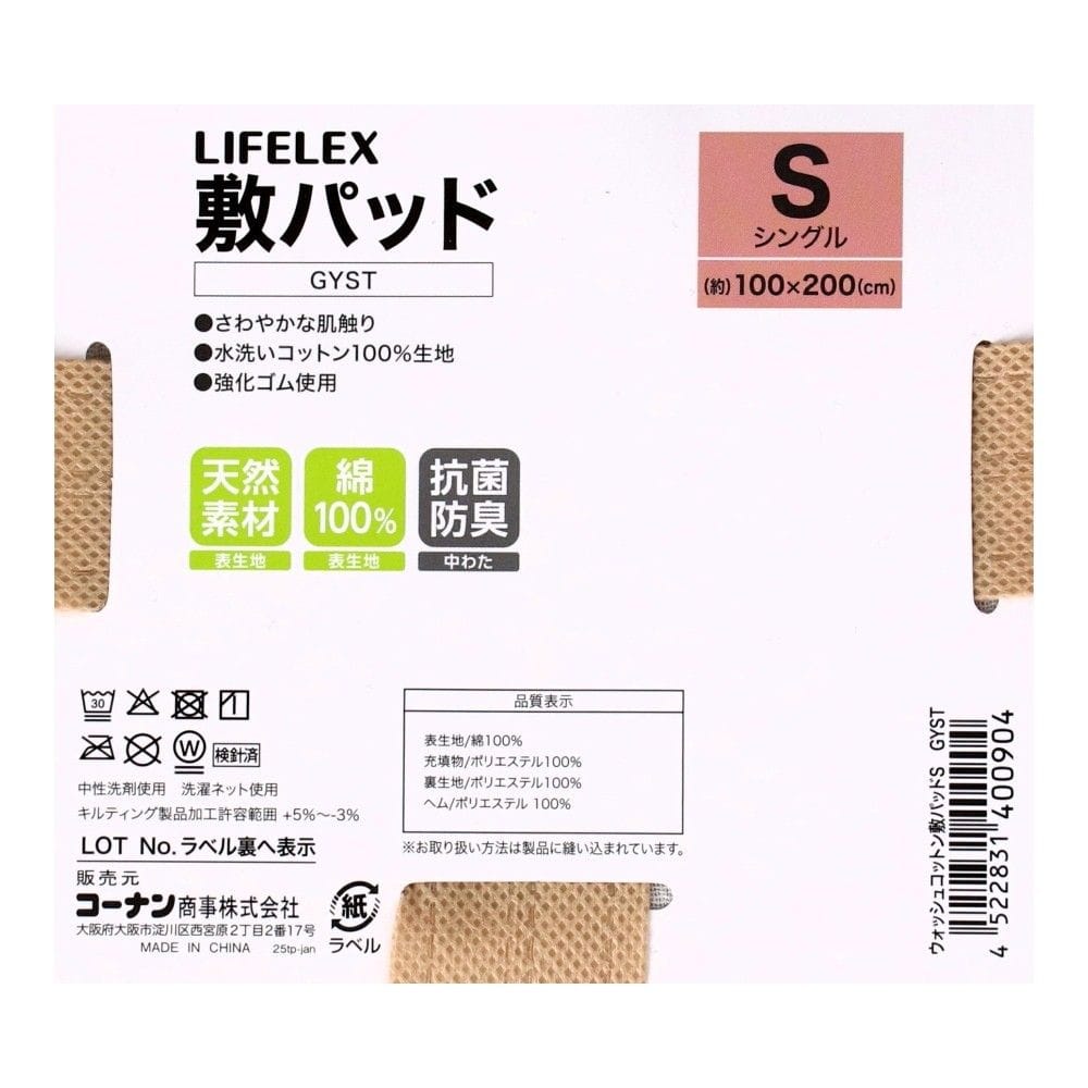 LIFELEX ウォッシュコットン敷きパッド S グレーストライプ