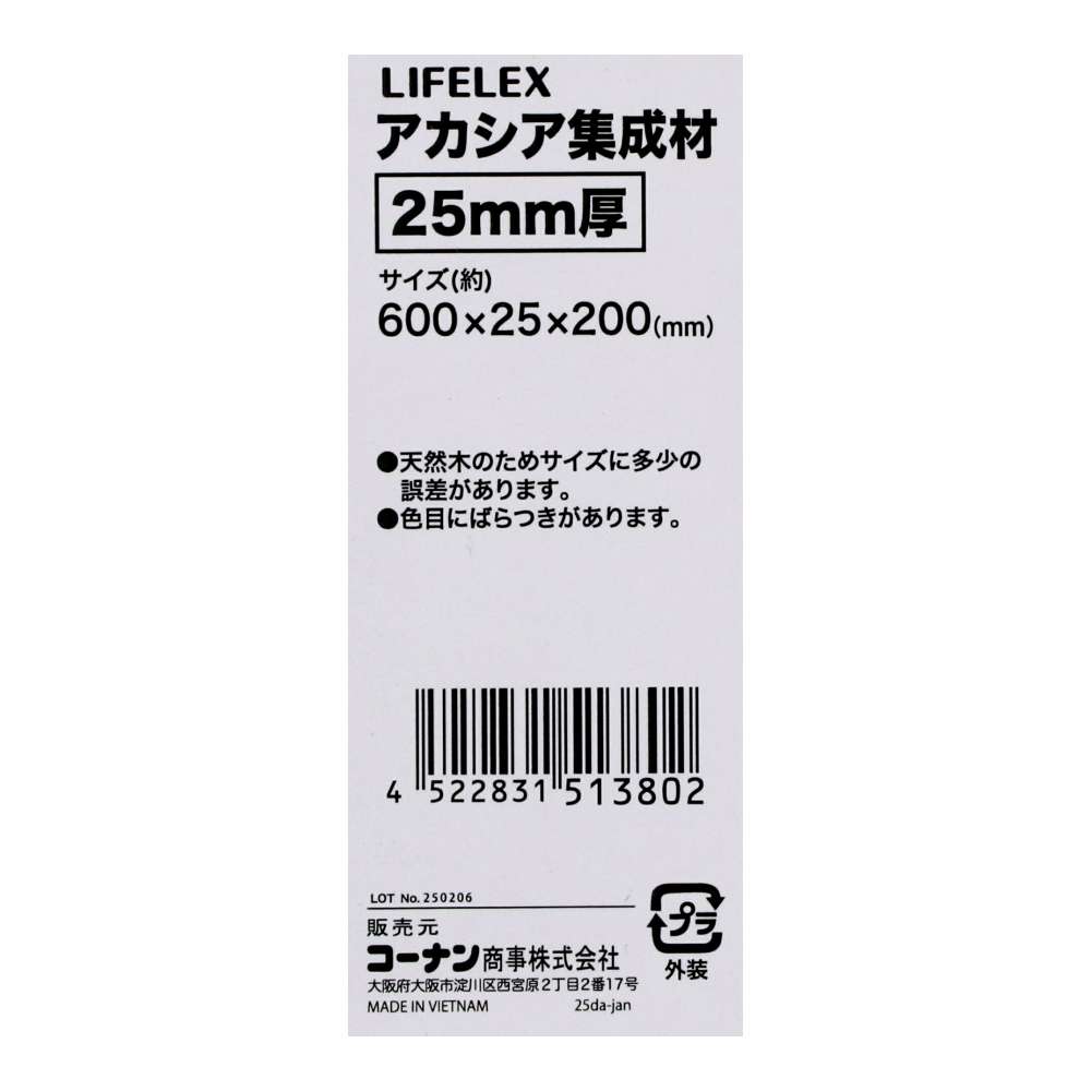 LIFELEX アカシア集成材25mm厚 約600×25×200