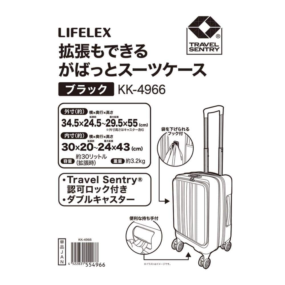 LIFELEX 拡張もできる がばっとスーツケース ブラック
