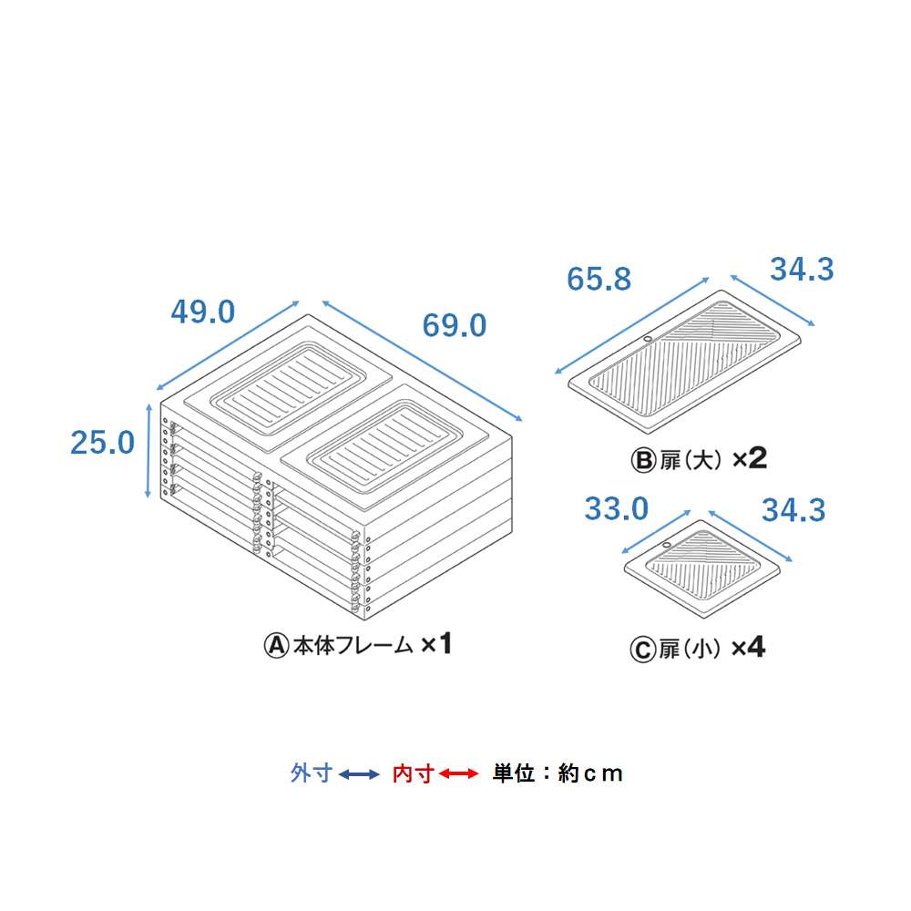 ●構造部材:本体/ポリプロピレン・ABS樹脂、扉/PET樹脂・ネオジム磁石、ハンガー部/アルミニウム合金