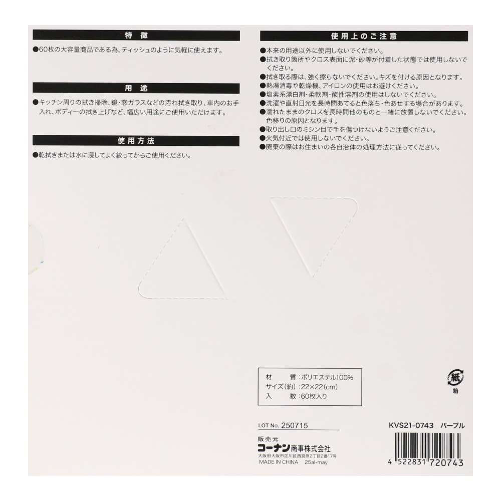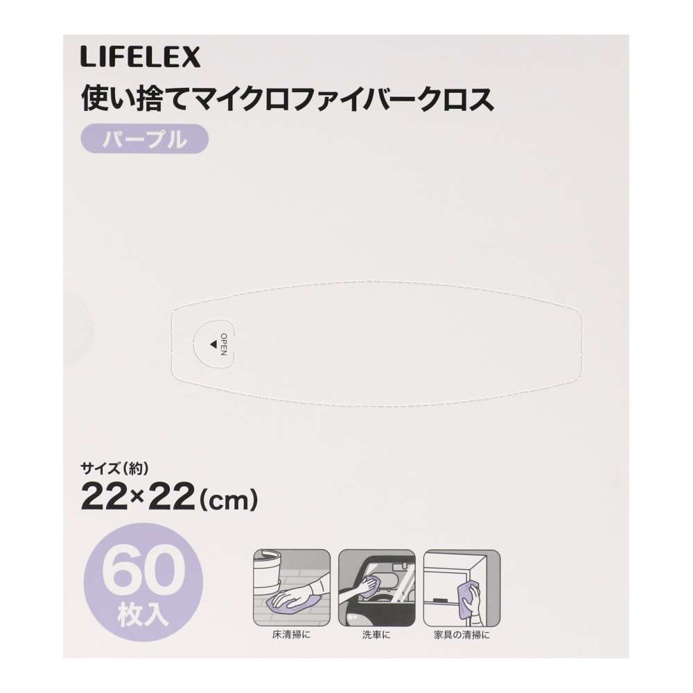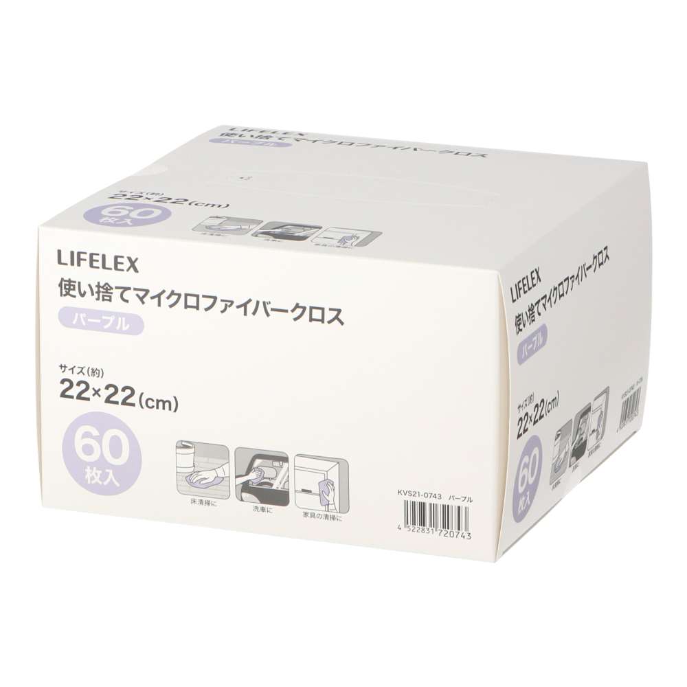 LIFELEX 使い捨てマイクロファイバークロス60枚 KVS21-0743 パープル ×12個セット