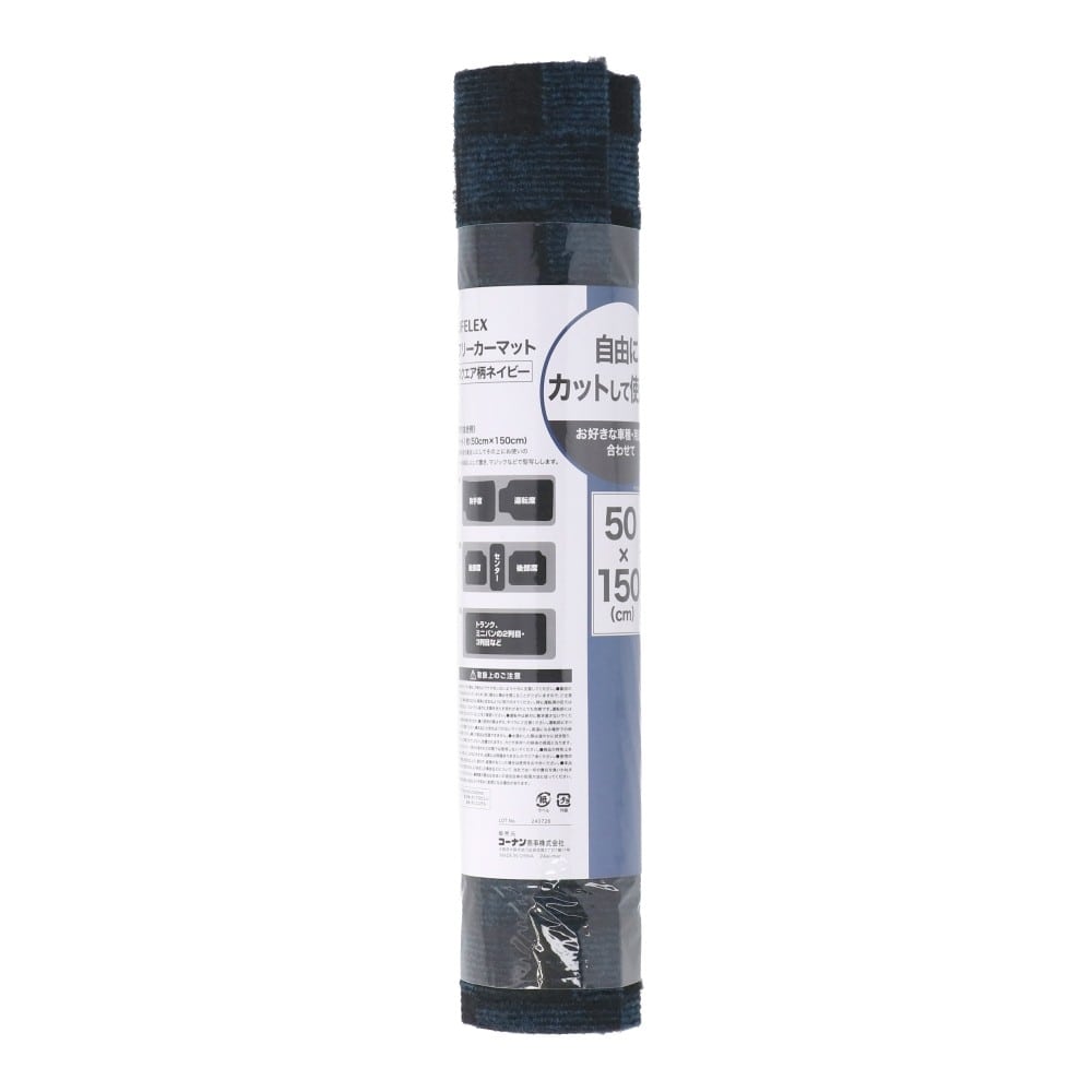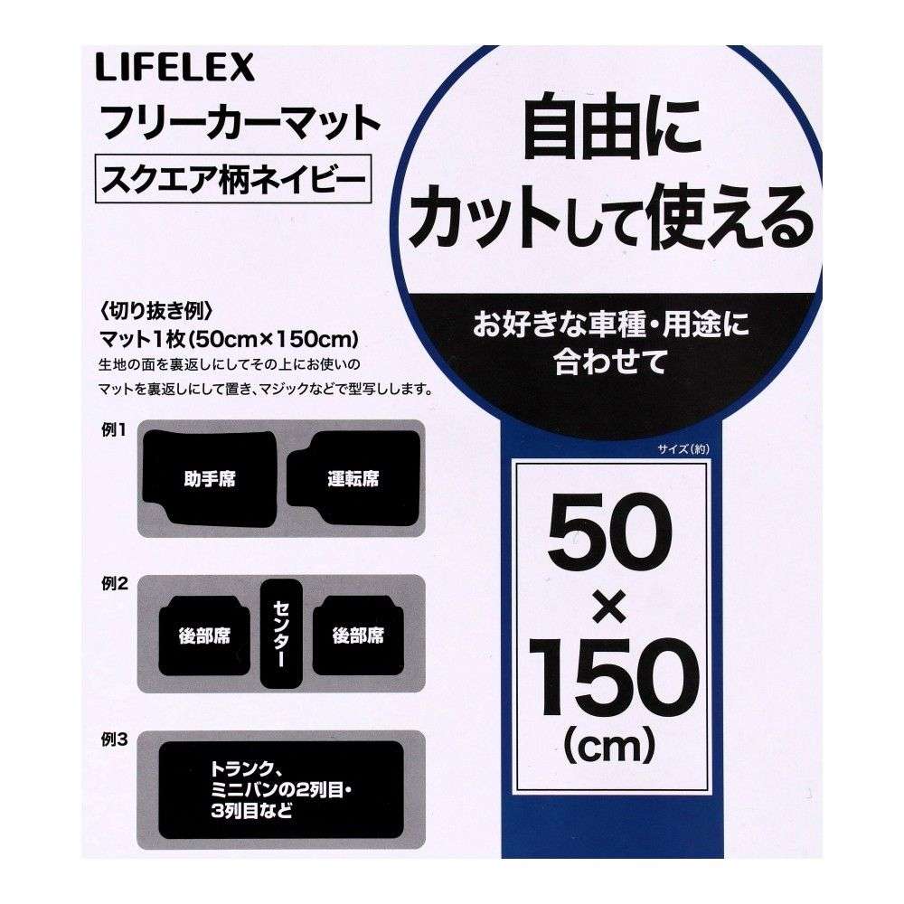 LIFELEX フリーカーマット スクエア柄 ブラック+ネイビー 50cm×150cm