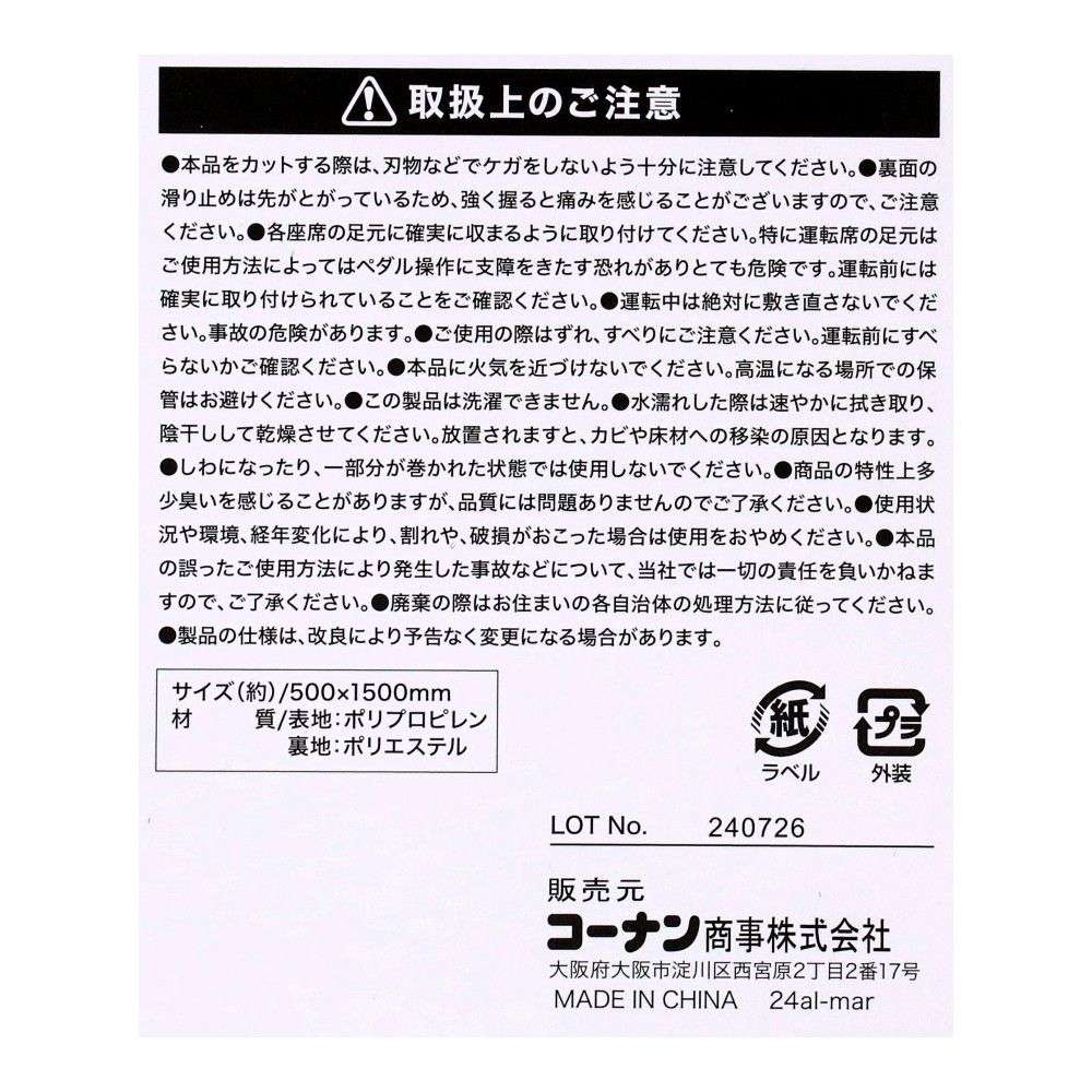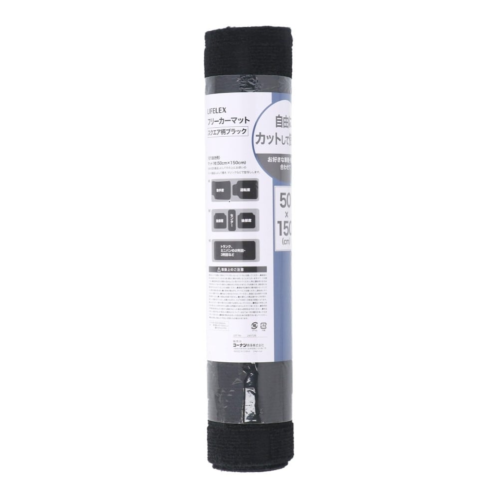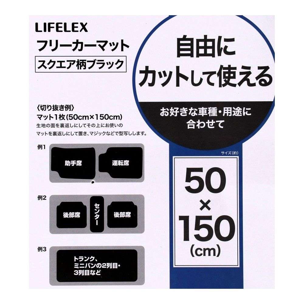 LIFELEX フリーカーマット スクエア柄 ブラック 50cm×150cm