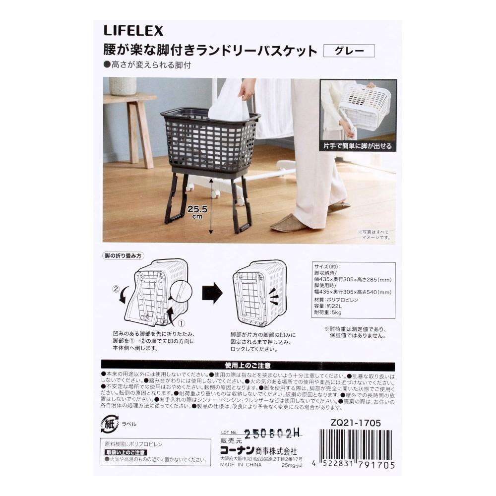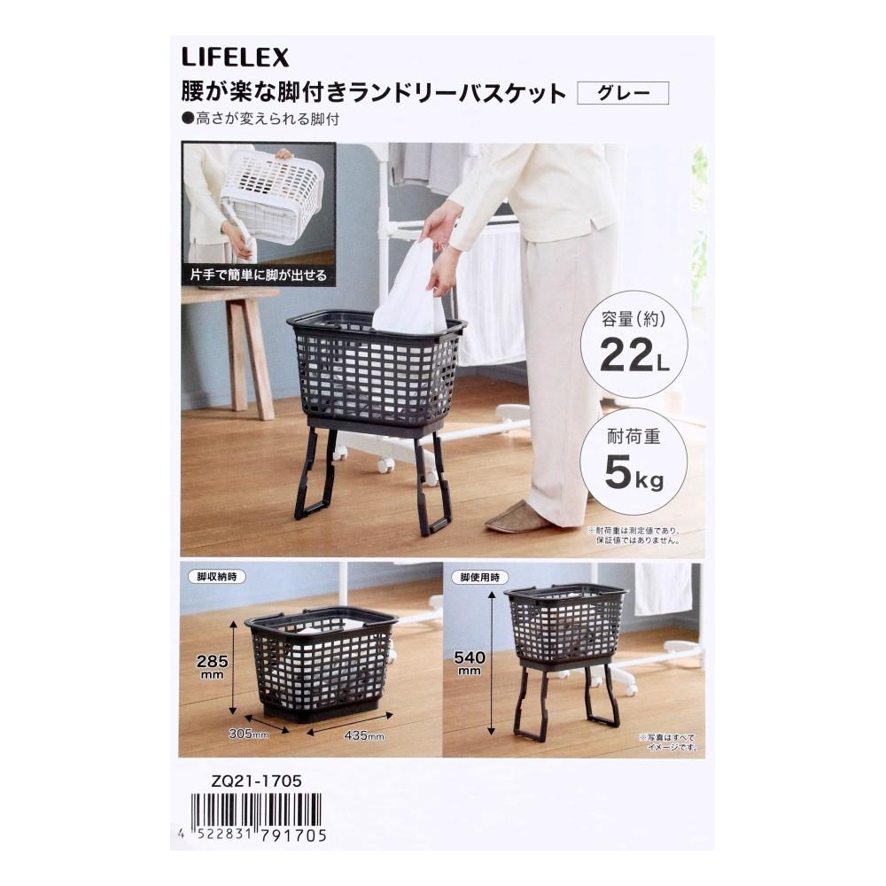 LIFELEX 腰が楽な脚付きランドリーバスケット グレー ZQ21-1705
