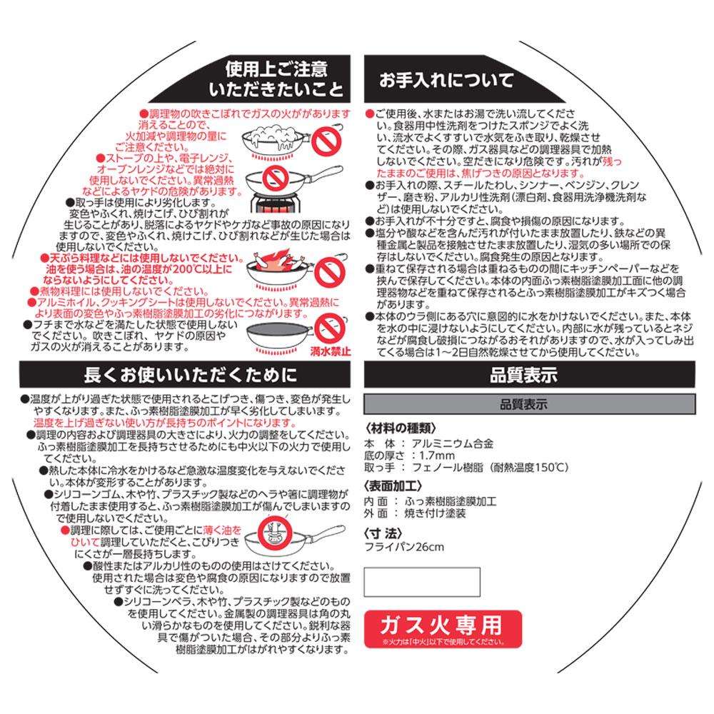 LIFELEX フライパン ゴリラのひとつまみ 26cm ガス火専用 鍋 軽い PFOAフリー ふっ素コーティング ダイキン Silkware