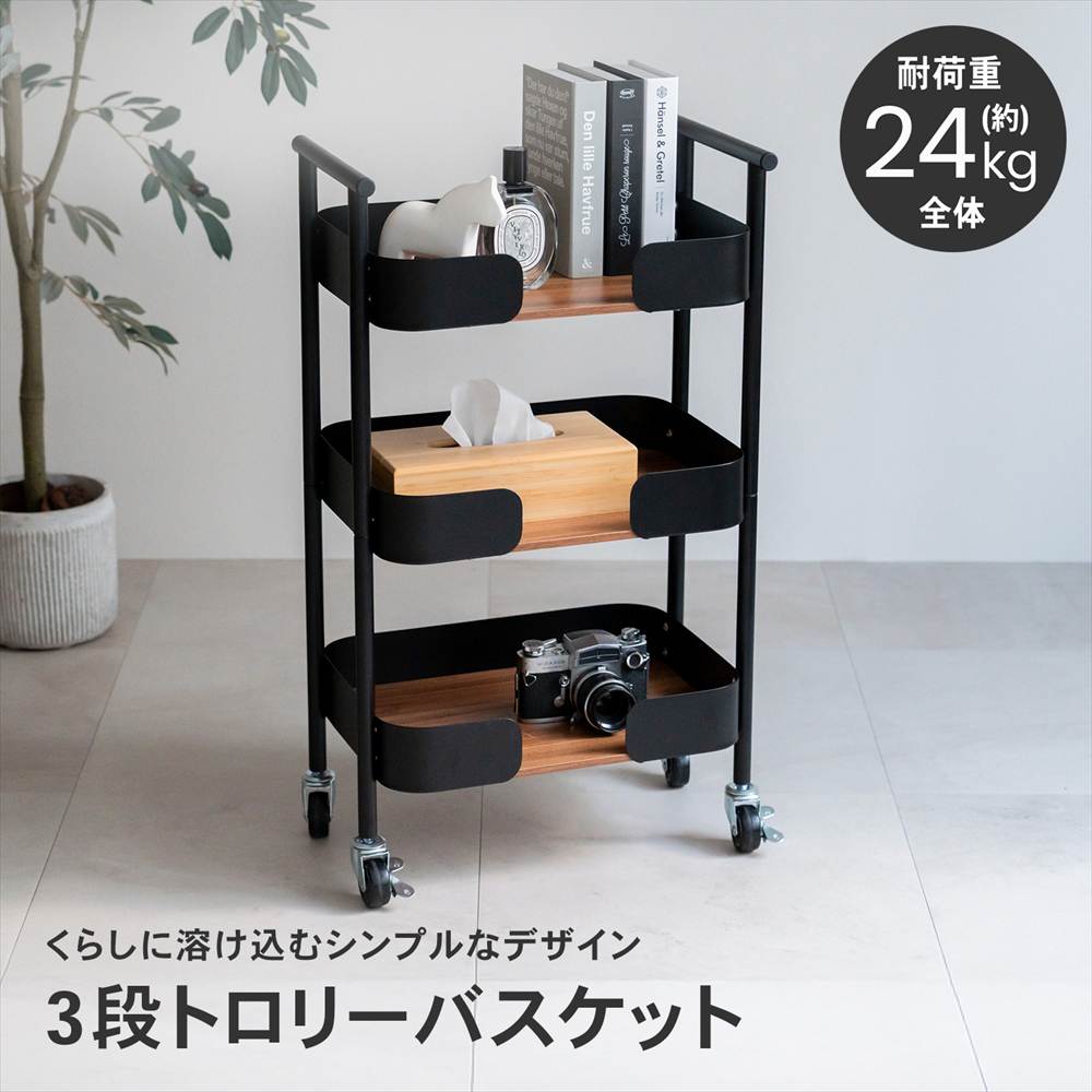●暮らしのあらゆるシーンで活躍。キッチン収納/子供部屋収納/赤ちゃん用品収納/リビング収納。毎日使うものを“取りやすい位置”にまとめられる3段トロリーバスケット。キッチンからリビング、子供部屋まで、暮らしに合わせて柔軟に使えます。