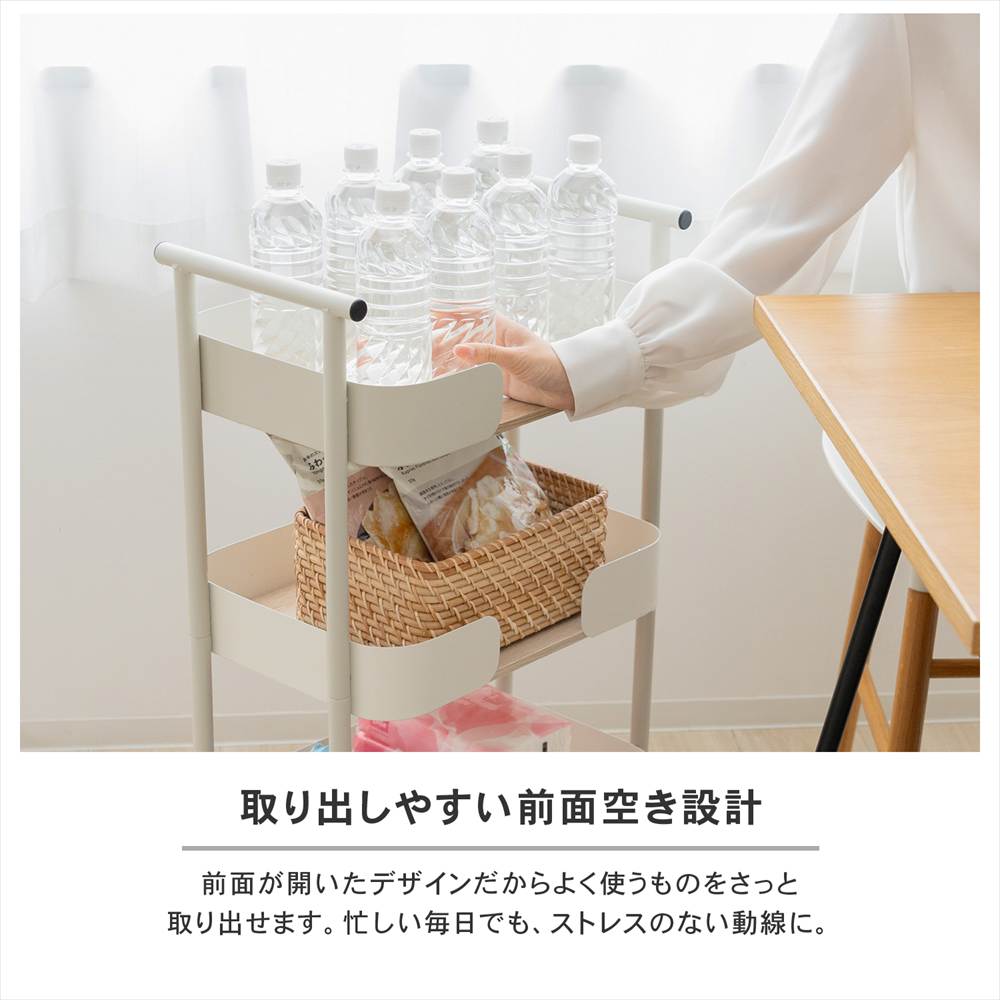 ●取り出しやすい前面空き設計。前面が開いたデザインだからよく使うものをさっと取り出せます。忙しい毎日でも、ストレスのない動線に。