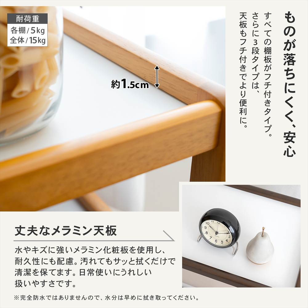 さらに3段タイプは、天板もフチ付きでより便利に。