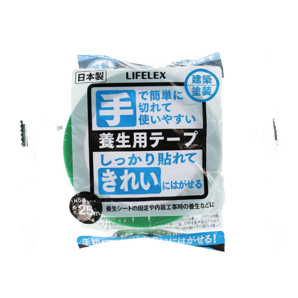 LIFELEX 養生用テープ 中粘着 幅50mm×長さ25m グリーン