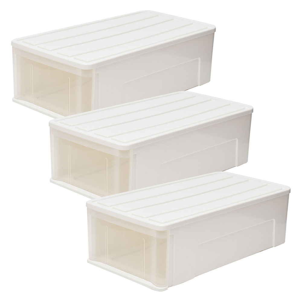 LIFELEX 引出収納ケース ワイド74M ホワイト 約幅44×奥行74×高さ23cm 押入用 ×3個セット