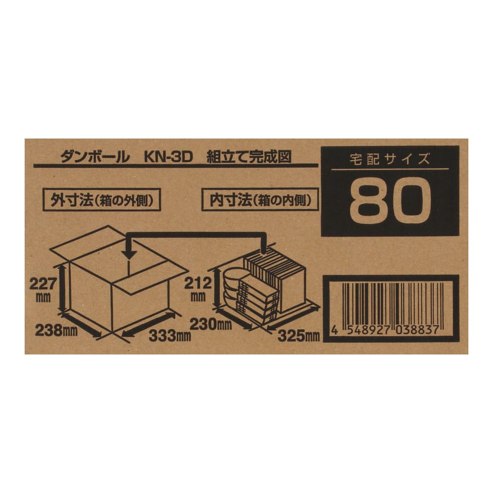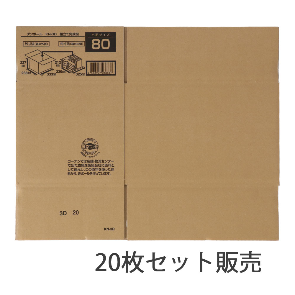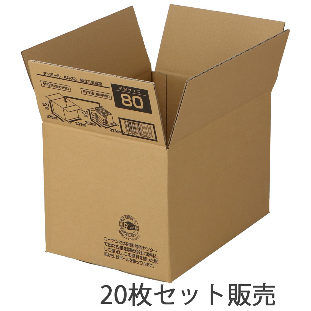 ダンボールKN-3D 段ボール 宅配サイズ:80 サイズ(約):外寸 幅333×奥行238×高さ227mm 内寸 幅325×奥行230×高さ212mm 1枚 ×20枚セット