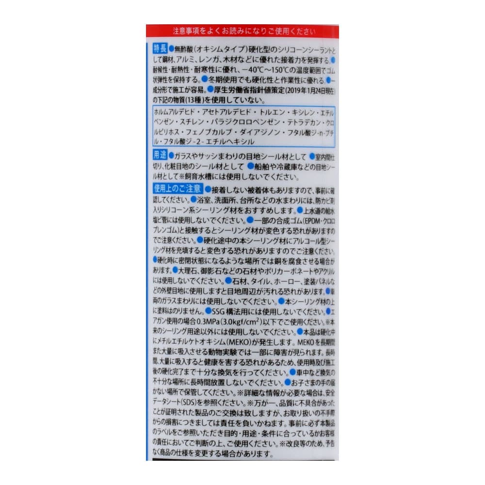 ●無酢酸(オキシムタイプ)硬化型のシリコンシーラントとして鋼材、アルミ、レンガ、木材などに優れた接着力を発揮