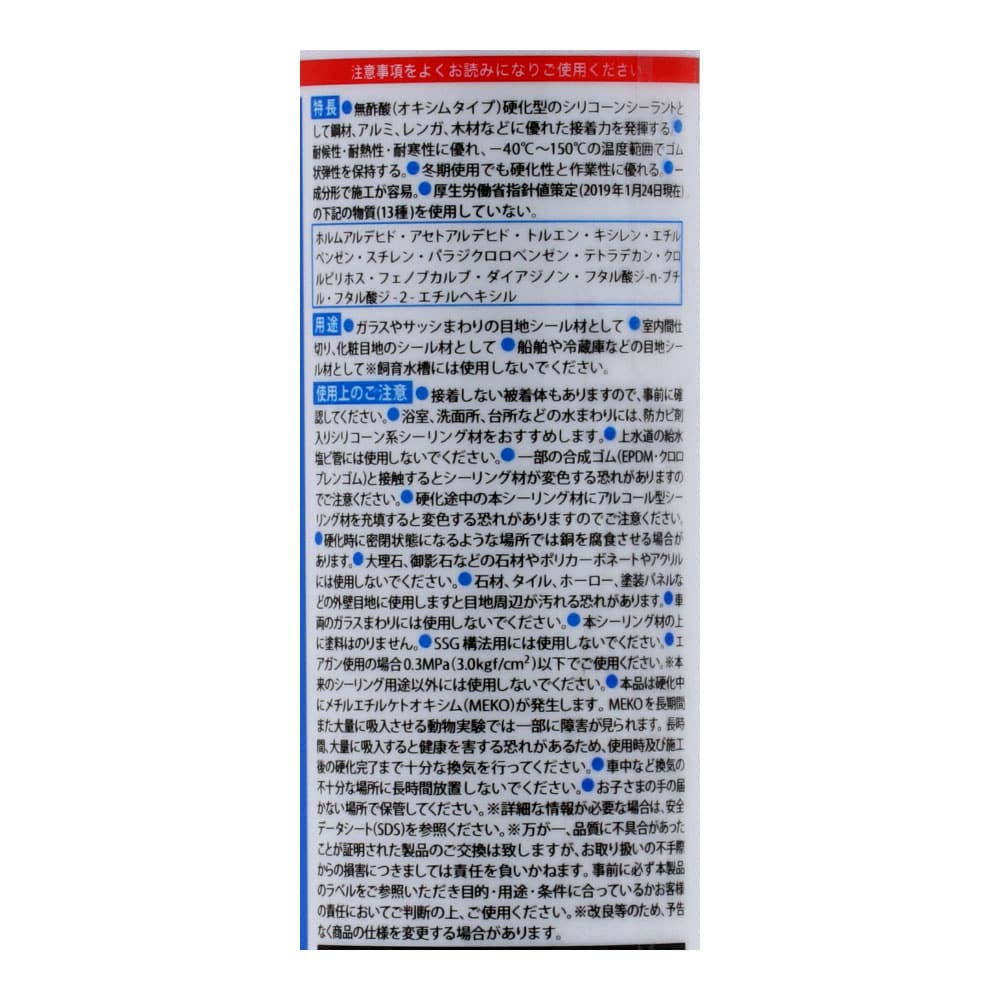 ●無酢酸(オキシムタイプ)硬化型のシリコンシーラントとして鋼材、アルミ、レンガ、木材などに優れた接着力を発揮