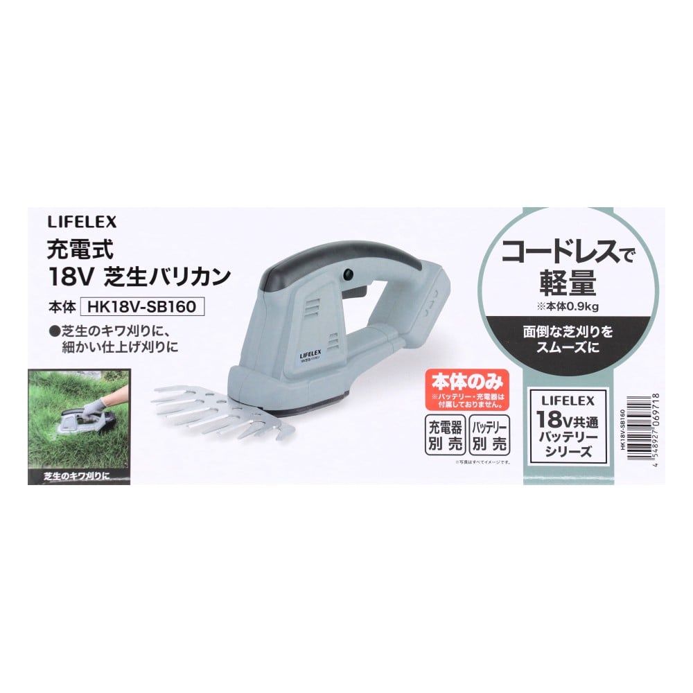 LIFELEX 18V 芝生バリカン HK18V-SB160 グレー
