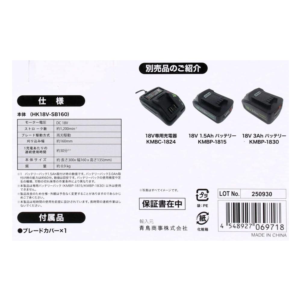 ●刈り込み幅:約160mm