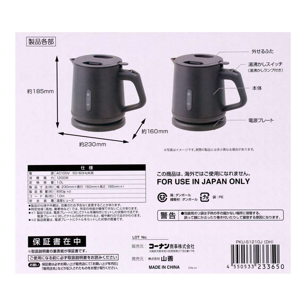 ●製品質量(約):890g(電源プレートにケトルをセットした状態)