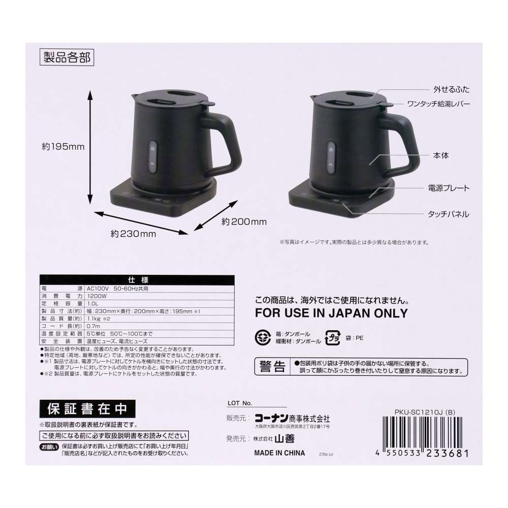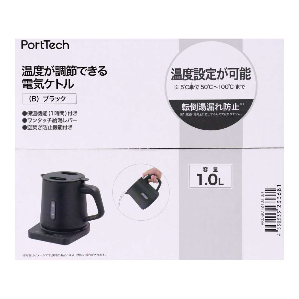 PortTech 湯こぼれ防止温度調節機能付き電気ケトル PKU-SC1210J(B)